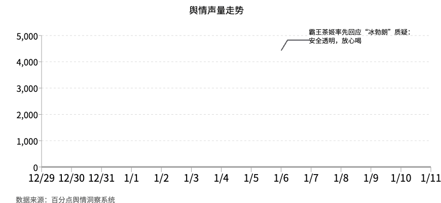 2024年12月29日00!00-2025年1月11日23!59,百分点舆情洞察系统共监测到“霸王茶姬冰勃朗”舆情消息约11769篇次,共笼盖349家。