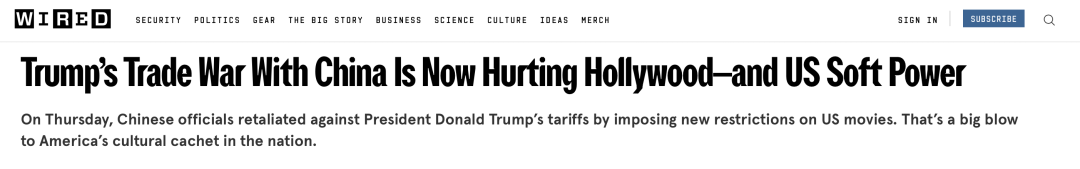 这是美国《WIRED》颁发的一篇报道,从题是特朗普对华倡议商业和正好莱坞取美国软实力。不外,正在某种程度上,当好莱坞不再是世界故事讲述者的核心,世界的每小我,都能够成为故事的讲述者。曾几何时,美国不只让世界不雅众为之倾倒,其塑制的美国硬汉往往以救世从的抽象吸引影迷无数,也正在潜移默化中输出了美国。而今,好莱坞片子被特朗普关税打得人命危浅,这,生怕就是“美国时代”竣事的起头!