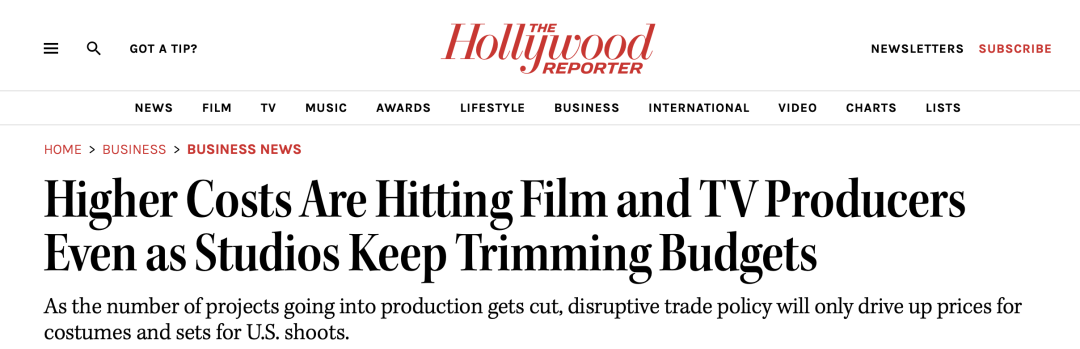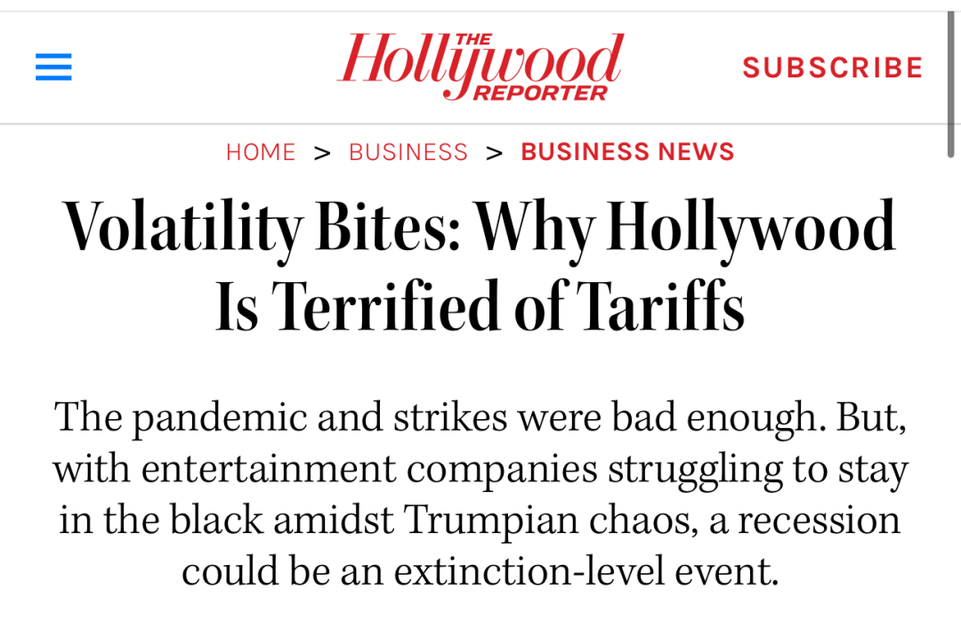 这是《好莱坞报道者》颁发的一篇题为《正在片子行业缩减预算之际,美国片子制制商还要面对高额关税夹击》的报道。搭景需要大量木材、胶合板和钢材,这些物料良多都从中国等国进口。关税的提高,便意味着这些环节原料将更高贵、更难获得。向片子布景组供货的油漆供应商暗示,关税影响到了他们的进货成本,他们估计油漆材料价钱会上涨30%。