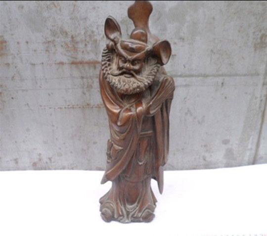 越柬紫檀:其毛孔排序成麦穗状。心材红褐至紫红褐色,木屑水浸出液绿蓝色,液体干涸后成黄色或黄黑色啧斑,轴向薄壁组织在放大镜下明显,主为同心式或略呈波浪形的细线状,木纤维壁厚,充满红色树胶。木射线在放大镜下可见,波痕可见,组织同形单列。有香气,结构细,纹理交错。