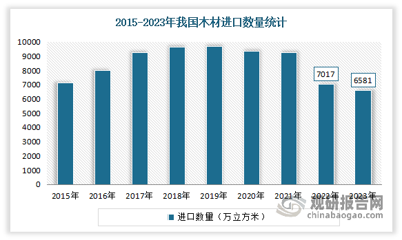 近年为顺应国平易近经济成长需乞降国内丛林资本,国度激励进口木材,木材进口数量快速增加。因而全体来看,当前我国木材进口依赖度较高,每年的木材进口量跨越5,000万立方米,每年破费正在木材进口上的金额跨越100亿美元,根基维持正在40%以上程度。特别是高端树种中,进口占比更高,例如中国的橡木、松木等次要木材来历中,进口占比均跨越40%。因而,沉视本土丛林资本的和可持续操纵,以降低对进口木材的依赖度,成为木材供给的沉点转型标的目的。2022年以来受俄乌场面地步的影响,全球木材供应大国俄罗斯的木材出口量大量削减。数据显示,2022年中国木材进口量大量下滑,为7017万立方米,同比削减24。07%。2023年我国进口木材累计达6581万立方米,取2022年比拟削减6。08%。