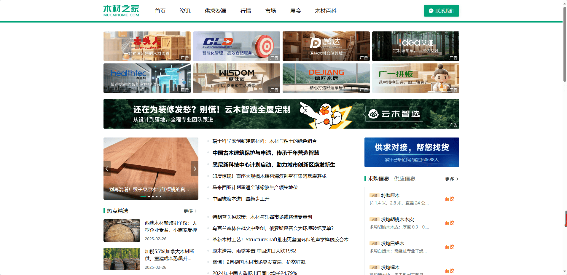 正在木材行业的广漠六合里,木材之家做为专业的木材行业资讯门户,正凭仗其丰硕的内容取杰出的办事,成为浩繁业内人士不成或缺的得力帮手。木材之家努力于为木材财产链上的各方参取者,从木材出产商、经销商到加工企业以及相关从业者,搭建一个全方位、深条理的资讯交换平台。它涵盖了木材行业的诸多范畴,从原木的采伐、运输,到各类木材产物的加工工艺,无所不包。而此中最受注目的,当属木材之家行情板块。