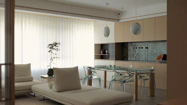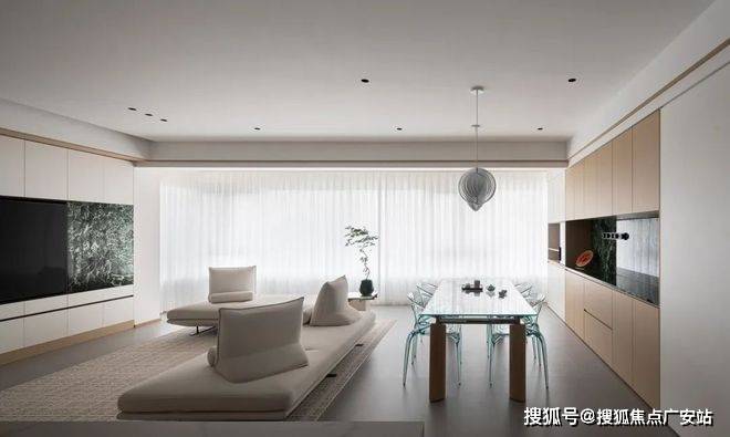 餐厅同样沉视全体结构取简练的线条,为立面勾勒出空间的天然质感,带来沉稳,且具有层次的设想美学。厨房取糊口阳台归并,扩大操做台面,并正在厨房外部新建西厨岛台区域,满脚做完早餐并就近用餐后,能间接出门上班的便利动线。原始从卧储物空间局限,从头整合取从卫、次卧、走廊关系后,向外部扩充部门面积,设想步入式衣帽间,最大化满脚两人日常的储物需求。