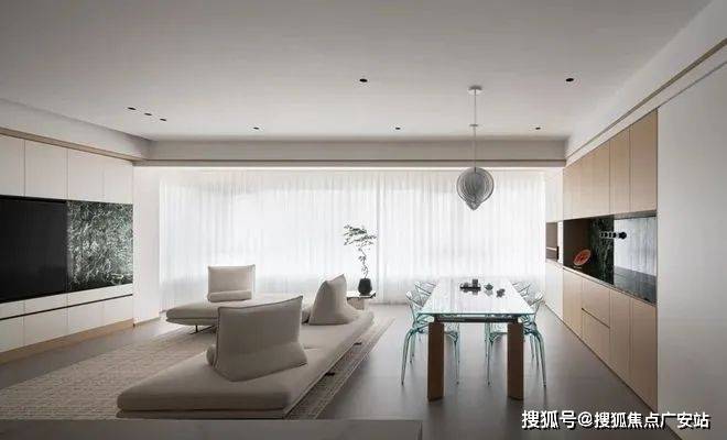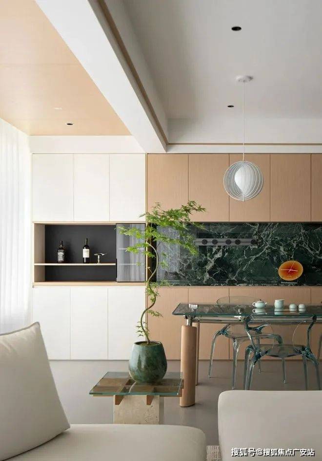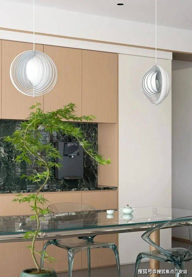 餐厅的设想同样沉视全体结构取简练的线条,大面积利用原木取Prada绿岩板,为空间添加了天然的质感,营制出沉稳且有序的美学空气。
