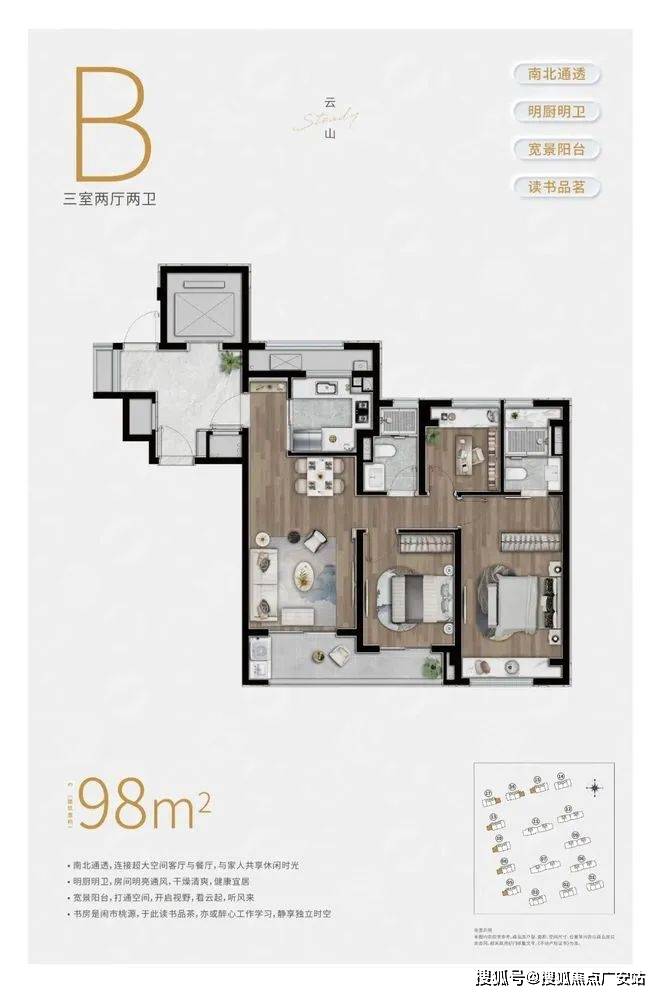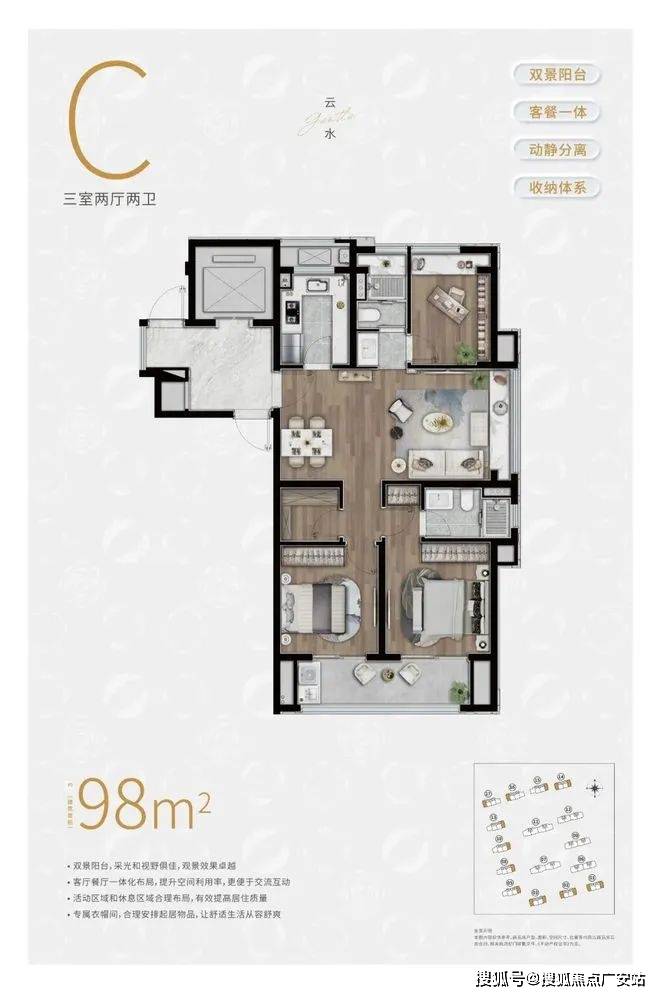 南向卧室带阳台,全体的栖身舒服度很高。别的,比拟B跟D户型,C户型设想有专属衣帽间,让舒服糊口从容舒爽。