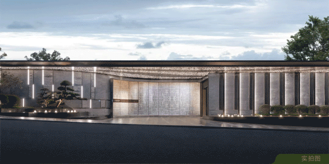 立面采用曲线设想,以横向线条为从地势,大屋顶飘板和弧形线条;打制轻巧度假场景感。上百次打磨弧形倒角仿铜铝板、艺术漆取磨砂玻璃连系温润高雅,呼应璞玉质感。